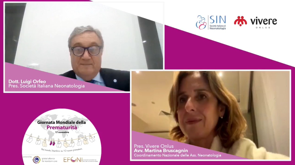 Per dare un ulteriore supporto ai genitori che si trovano ad affrontare una nascita prematura, il Presidente SIN Dott. Orfeo e l’Avv. Martina Bruscagnin, Presidente Vivere Onlus hanno risposto ai dubbi delle famiglie, con una diretta Facebook, sulle due pagine, il 17 novembre dalle 17.30 alle 18.30. Mamme e papà hanno potuto così fare domande “live” ed avere risposta a tutti i loro dubbi e preoccupazioni.
