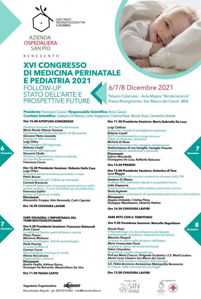 Si è tenuto a San Marco dei Cavoti (BN), il XVI Congresso di Medicina Perinatale e Pediatrica 2021, nei giorni del 6-7-8 Dicembre, presso l’Aula Magna “Nicola Iacocca” del Palazzo Colarusso.